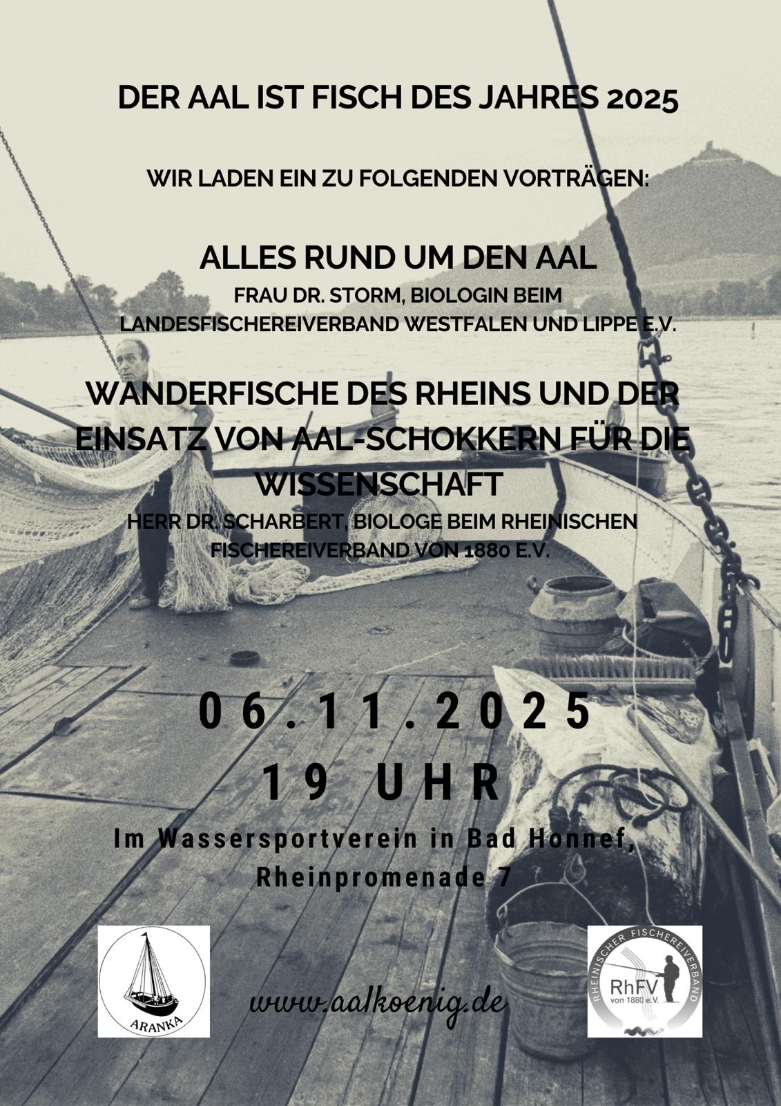 der Europäische Aal wurde zum Fisch des Jahres 2025 gewählt. Aus diesem Anlass laden der Aranka e.V. gemeinsam mit dem Rheinischen Fischereiverband von 1880 e.V. herzlich zu einem Informationsabend ein: